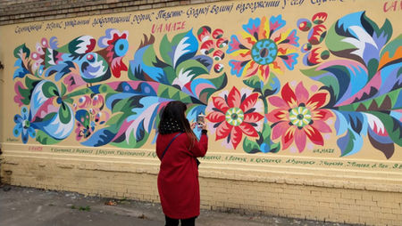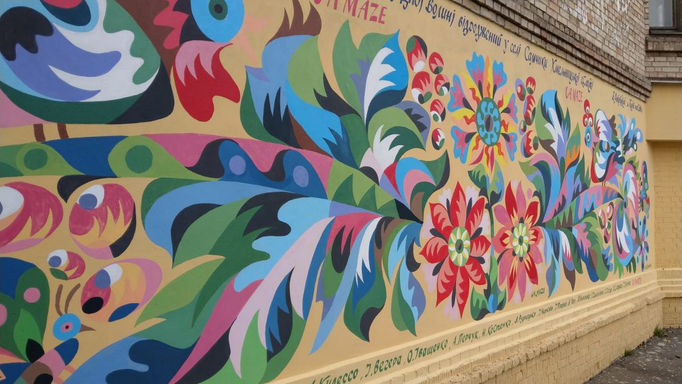 It is one of my most exciting projects. The world brand proposed cooperation which resulted in a painting and a mural in the style of Samchykivka. Their attention was drawn to the art, which fascinates with brightness, courage, and optimism.